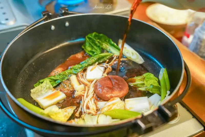 再倒入壽喜燒的醬汁,這時候鍋中開始飄起香味