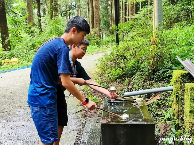 路邊有簡易版的手水舍,可以洗洗手,另一旁有廁所,廁所旁有平順的道路,若無法走樓梯可以選擇走道路!!