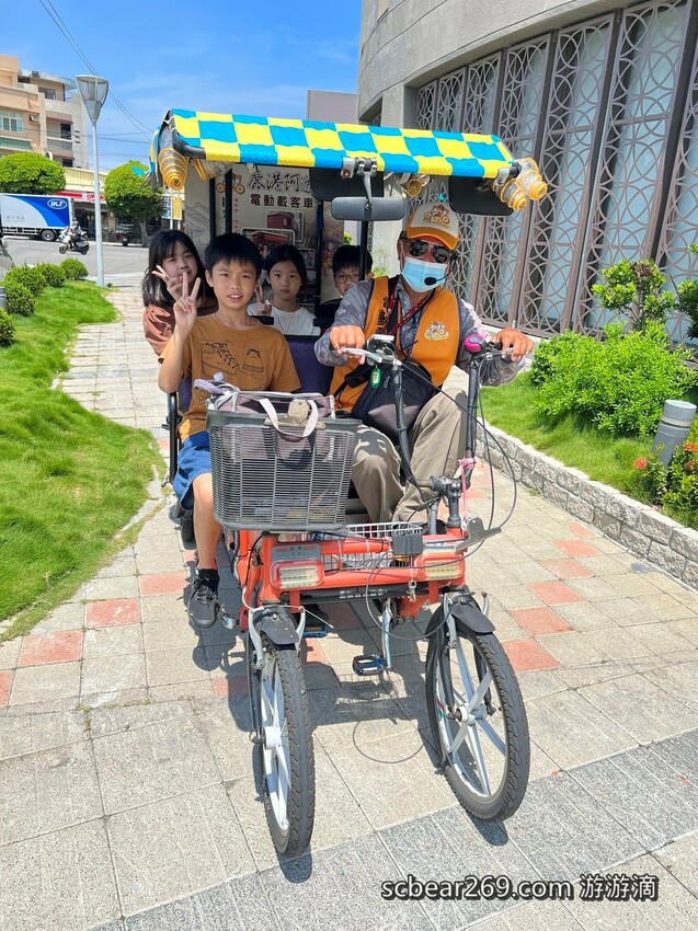 讓三輪車的阿伯帶著孩子們騎三輪車穿梭在巷弄裡
