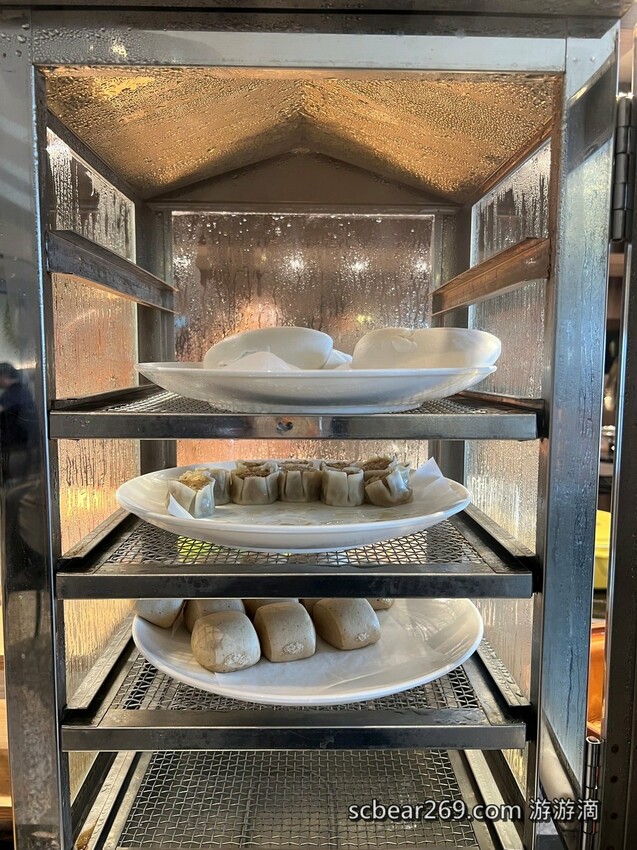 蒸包子機裡有刈包、燒賣和小饅頭
