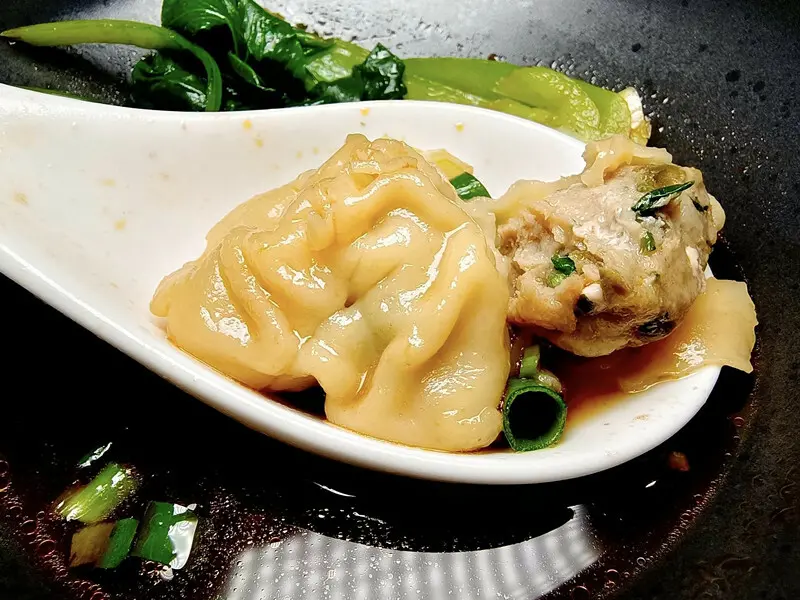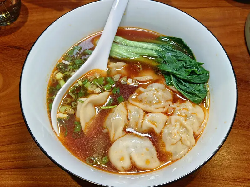 拍一張湯餃的特寫給大家看看,那個水餃皮薄餡多,吸飽了牛肉湯汁精華的湯餃更好吃了!