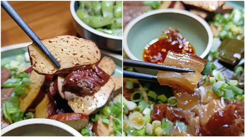 QQ的牛筋也滷得剛剛好,吃起來滿滿的膠原蛋白,而且他們的豆干還是特別挑選有氣孔的有機豆干,這樣才能吸飽滿滿的滷汁精華啊!