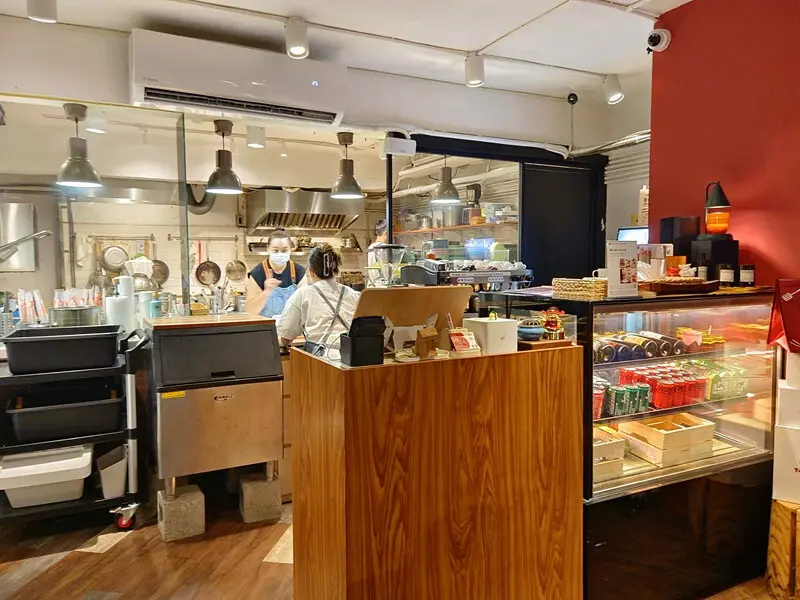 櫃檯後面就是半開放式的廚房,老闆娘正在跟員工確認點餐跟出餐的細節,看起來非常認真。店名叫做「Table 27」是因為很會煮飯的老闆娘以前住在27樓,在開餐廳之前,家裡常常有很多客人來吃飯,每個人吃過她的手藝都變成他們家的常客,所以開這家店就乾脆取名叫簡單又好記的「Table 27」啦!