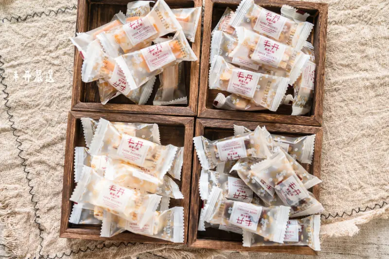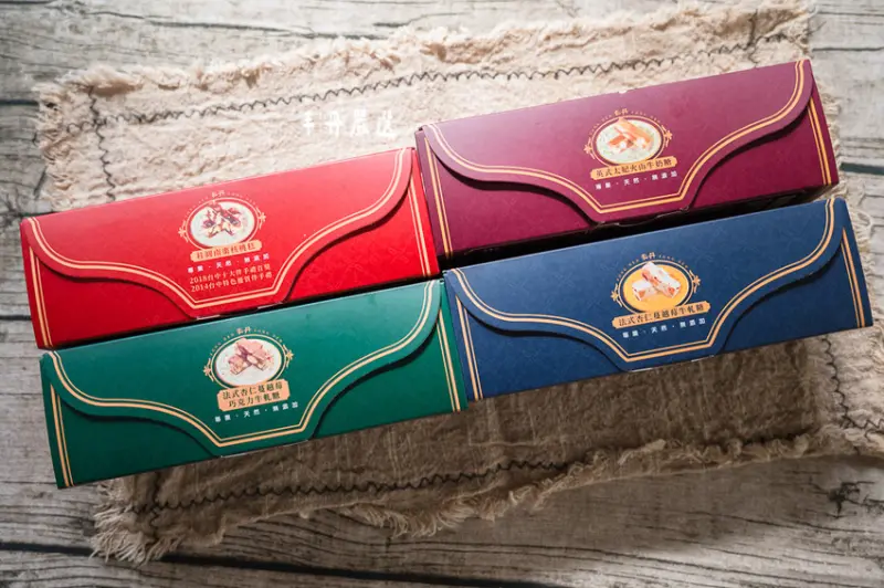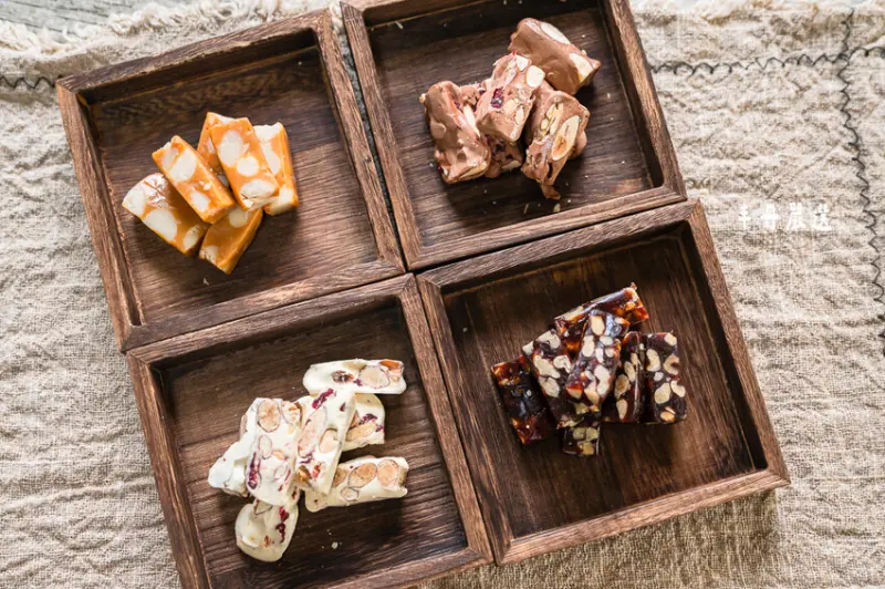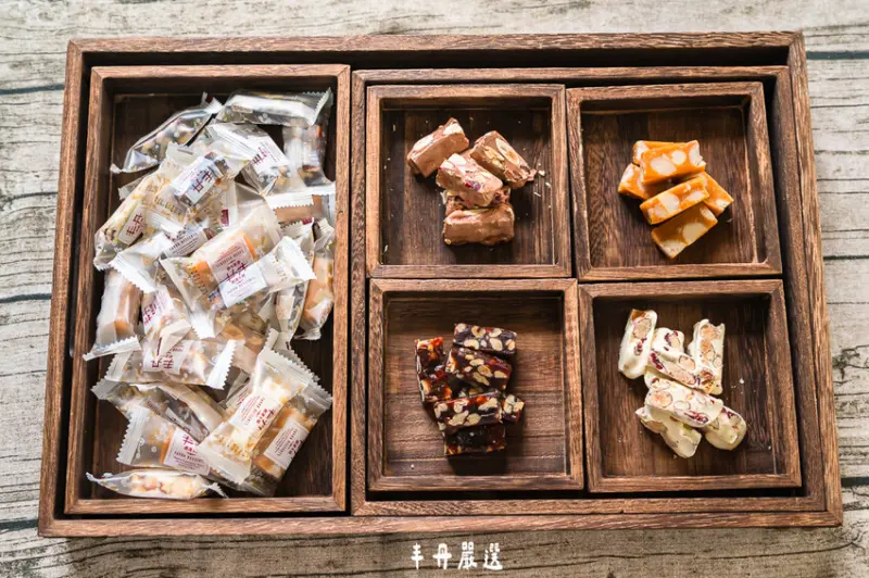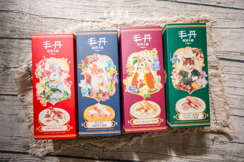 丰丹嚴選總共有四款糖果,分別是桂圓南棗核桃糕/英式太妃火山牛奶糖/法式杏仁蔓越莓牛軋糖/法式杏仁蔓越莓巧克力牛軋糖,每一款用的原料都很頂級,也完全沒有加任何人工添加物,吃完不會讓你的嘴巴有黏黏的感覺。