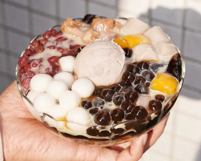 喜歡傳統刨冰的各位注意!「嫩仙草2.0」大升級啦!一次滿足芋圓、地瓜圓、珍珠、湯圓、紅豆、大紅豆、芋泥球以及嫩仙草等等8種配料,真的是料多實在,嫩仙草非常咕溜水嫩,仙草香氣也剛剛好,重點是好大一碗,吃完好有飽足感。
