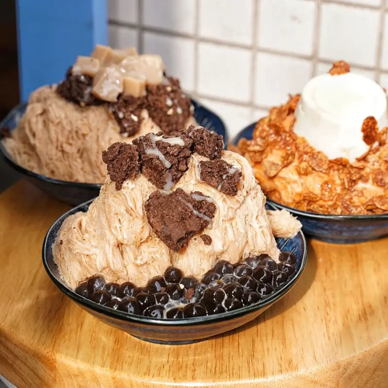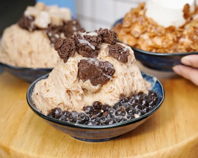 大碗公冰·甜品最近的人氣新品就非「義美奶茶綿綿冰」系列莫屬啦!這款聯名冰品超級吸睛,加入了大家熟悉又懷念的義美巧克力酥片,還有全台首創的義美奶茶粉粿,一口咬下立刻勾起兒時的美好回憶,同時又帶來全新升級的口感體驗。