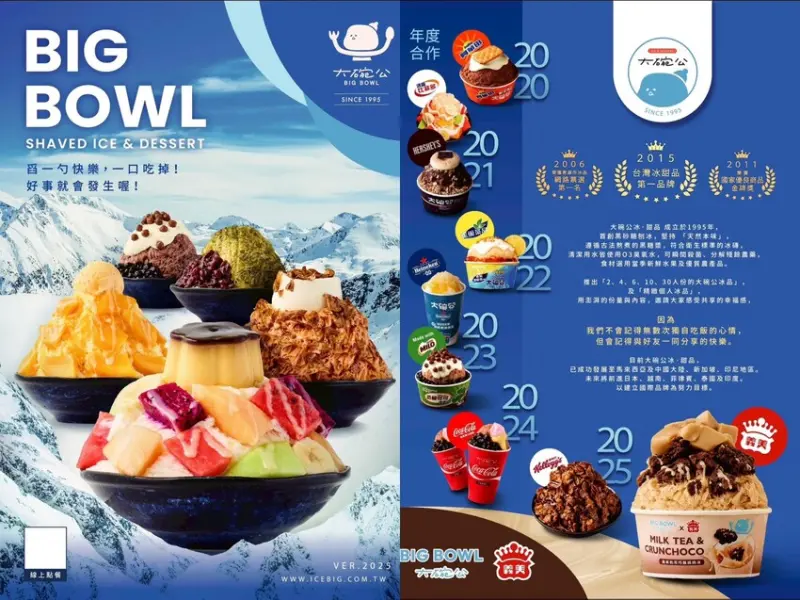 ▲大碗公冰·甜品菜單價格