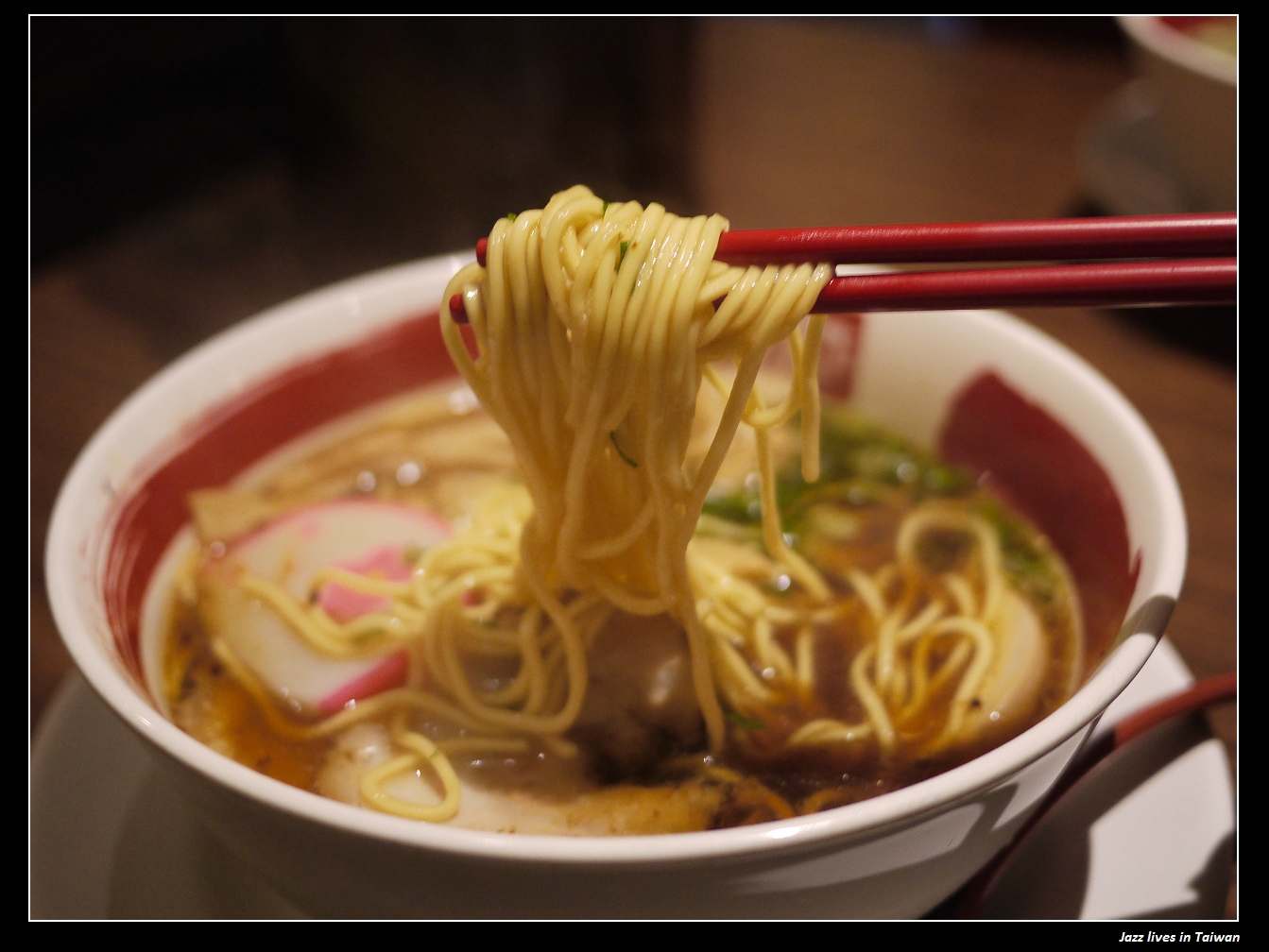 偏硬的麵條(自選的), 吃起來感覺真的不錯, 只是我那大胃的捧油在怨嘆, 怎麼沒有大碗的選項呢?