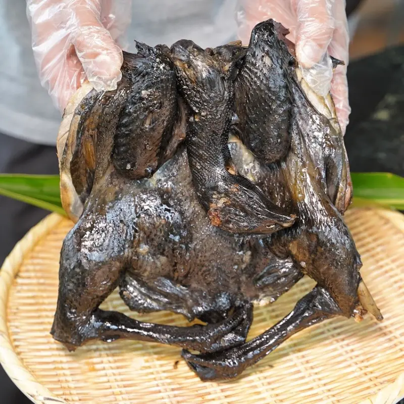 「鹽焗烏骨雞」以鹽焗烤的手法鎖住肉汁,讓烏骨雞吃起來皮Q肉嫩,肉質超級甜,這道是「綠野山莊花園餐廳」招牌菜之一,推薦必點!