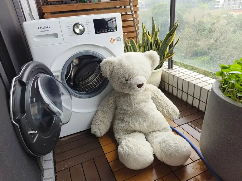 大白熊是女兒從小陪到大的大玩偶,因為陪著一起睡覺,會有頭髮的油垢與汙垢,而且長期放在床上,也會有塵蟎的產生,Hank媽使用除蟎功能,以高溫洗滌來消滅蟎蟲。