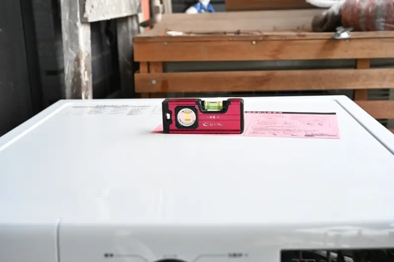CHIMEI奇美智能滾筒洗衣機位置調整好,以水平儀校正完成後,便已完成安裝。