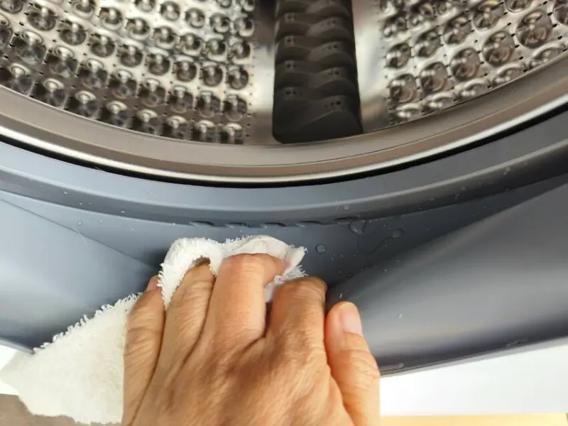 每次洗衣完成後,封門上殘留水珠、棉絮,都要擦拭乾淨。每次洗衣後每次擦拭,這樣比較不易發霉、發臭,保養洗衣機壽命更持久喔。