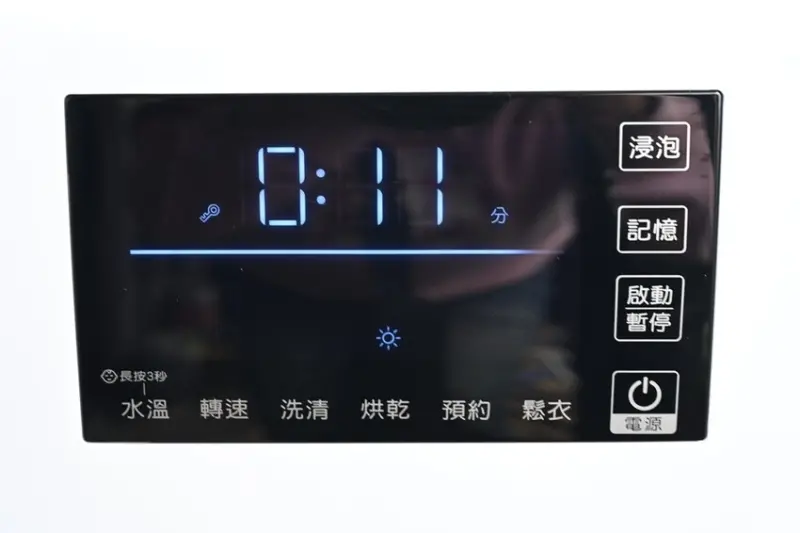 長按水溫鍵3秒,可設定童鎖功能,洗完衣服後還須按解除,門才能打開喔。