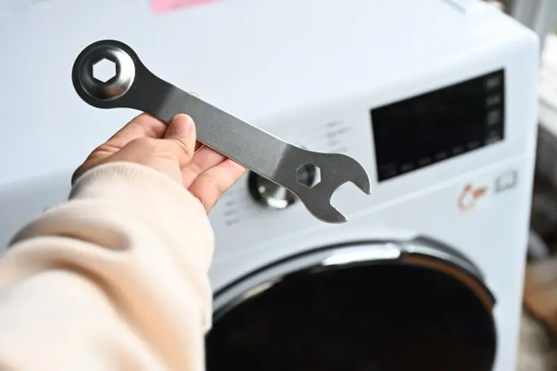 CHIMEI奇美智能滾筒洗衣機水平抓好就不能移動他,如果非要移動,CHIMEI奇美還附送一支原廠板手,讓你可以調整4隻腳的高度,讓洗衣機更平穩。