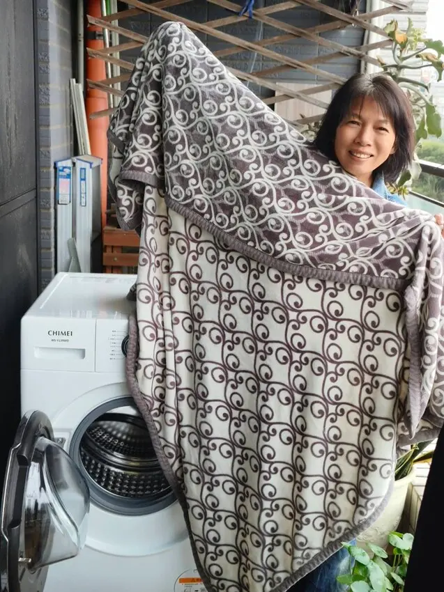 剛洗乾淨、烘乾過後的毯子,聞起來有暖烘烘的味道,好暖、好舒服喔。