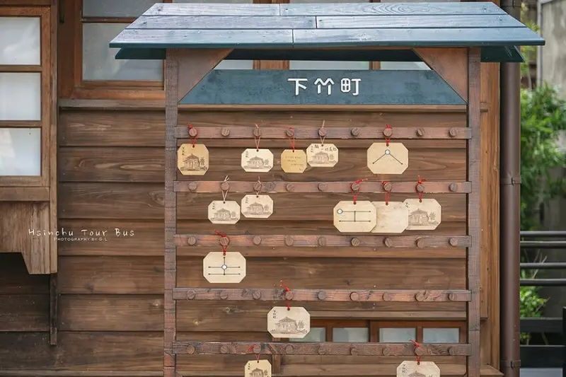 第一站我來到的是新竹火車站後站附近的「下竹町-南大路警察宿舍」。 在 1935 年的時候,新竹火車站後站這一帶被叫做「黑金町」,那時候旁邊就是「鐵道部宿舍區」。 第二次世界大戰後,這邊改名叫「下竹里」,而這兩棟雙拼的日式宿舍就一直作為「警察宿舍」使用,一直保留到現在。 所以「下竹町」這個名字,就是結合了「黑金町」跟「下竹里」周邊的歷史文化來的。 而且跟大家說個特別的,走進「下竹町」裡面是不用脫鞋子的喔!跟一般的日式建築、日式宿舍不一樣。