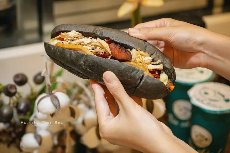 這天晚上我吃了超美味又很有特色的「竹炭雞火腿叉燒麵包」,看到麵包裡面的餡料真的是滿到快掉出來了。 我二話不說馬上開吃,跟蔬菜、醬料一起入口,越吃越順口,真的會讓人一口接一口停不下來,瞬間就吃光光了!