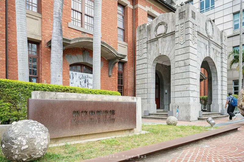 「新竹市美術館」是屬於日治時期的建築,使用了當時歐洲的古典系建築風格。 面對整棟建築時,可以看到大門口的拱門是採用羅馬式的設計,外牆的紅磚、橫貫建築體的兩道白色水平線設計,以及羅馬式的拱門,還融合了日式傳統屋瓦,可見當時的設計非常自由且有創新。