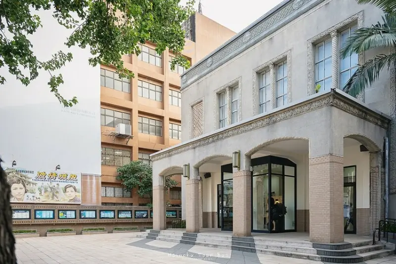在「市政府站」附近還有一個很有意思的地方,就是「新竹市影像博物館」。 它的前身是 1933 年建立的「有樂館」,當時可是全台灣第一座有冷氣設備的歐化劇場喔! 從建築外觀來看,可以發現它融合了古羅馬與阿拉伯的建築風格。