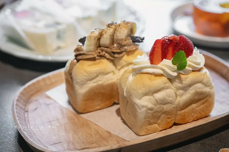 除了很有名的季節水果三明治,可愛的山形吐司也是店裡的招牌之一。 可以一次吃到香蕉卡士達跟草莓乳酪兩種口味,在這個下午茶時光一次滿足。