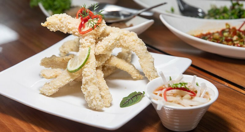 泰式魚柳,炸到的酥香,麵衣薄脆,裡面的魚柳軟帶帶著微微的魚汁,淋上泰式的醬汁和大量的洋蔥,泰式的清爽和台式的虱目魚也是可以如此的合拍,這道個人非常喜歡!!!