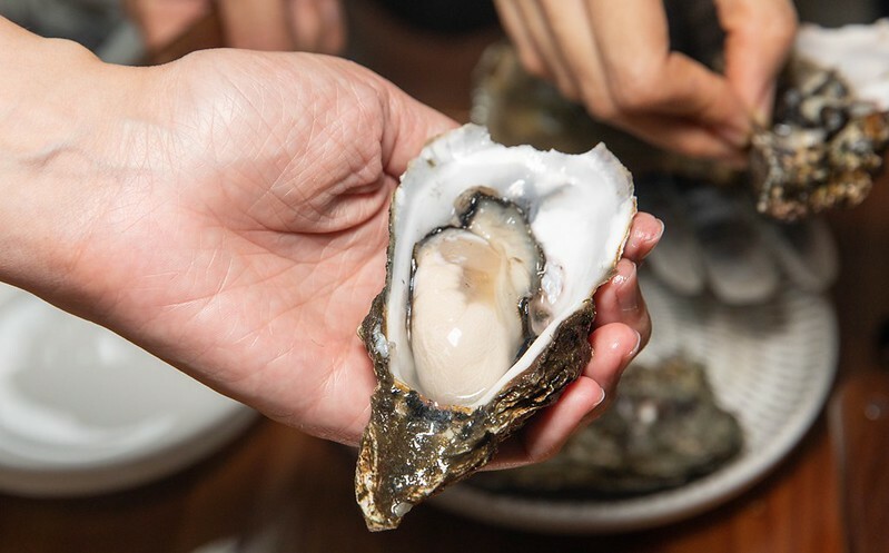 餐前剛好有當日限定的超大台南生蠔,帶殼大約有巴掌大小,剝開裡面的肉相當飽實,多汁又鮮甜,一點也不輸日本、國外的生蠔,在台灣除了澎湖大概就這最厲害了。
