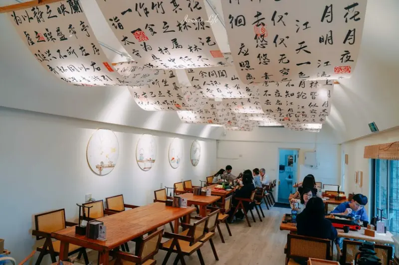 從造景設計到餐廳的建築跟室內都可以感受到濃濃的中國風。室內用餐區還掛著充滿書法的布簾,而且你還可以看到櫃檯的人員很仔細地在泡茶。