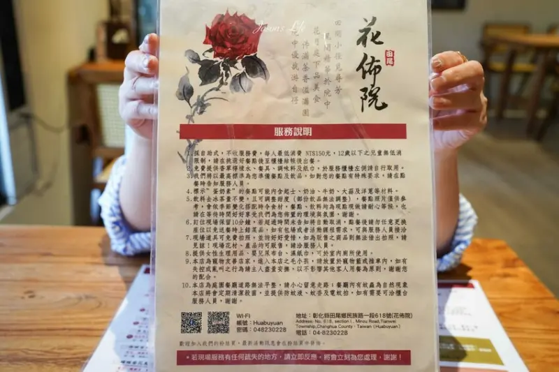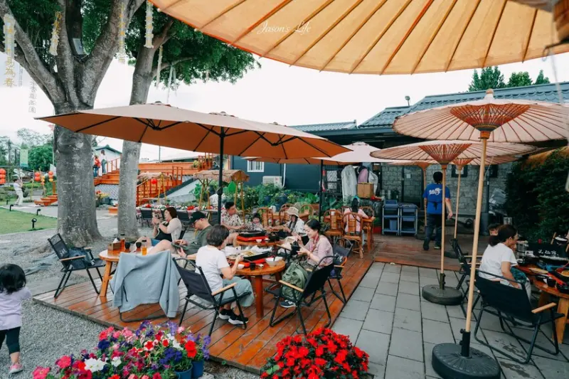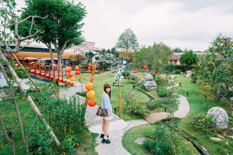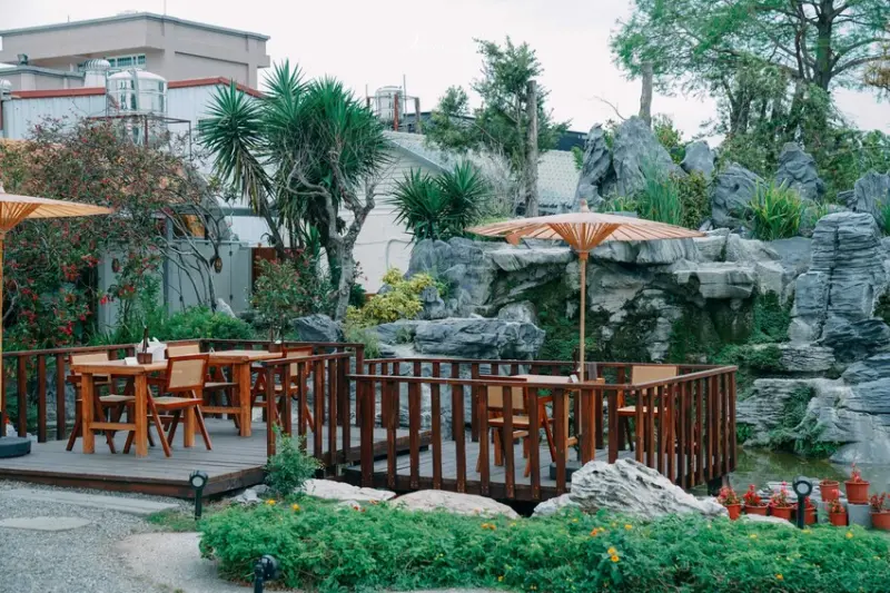 他們是以「花」跟「茶」為主題,打造了一個充滿文藝氣息又綠意盎然的夢幻空間。最厲害的就是那個用回收屋瓦做成的「屋頂上的花園」,上面種了好多可以吃的花和香草,走進去真的就像走進一幅會呼吸的山水畫一樣。而且啊,園區裡面還融入了好多中式建築的元素,像是拱門、水池,還有漂亮的花窗造景,每一個角落都超好拍的啦!被網友們稱為「彰化最美中式庭園餐廳」真的是一點都不為過。