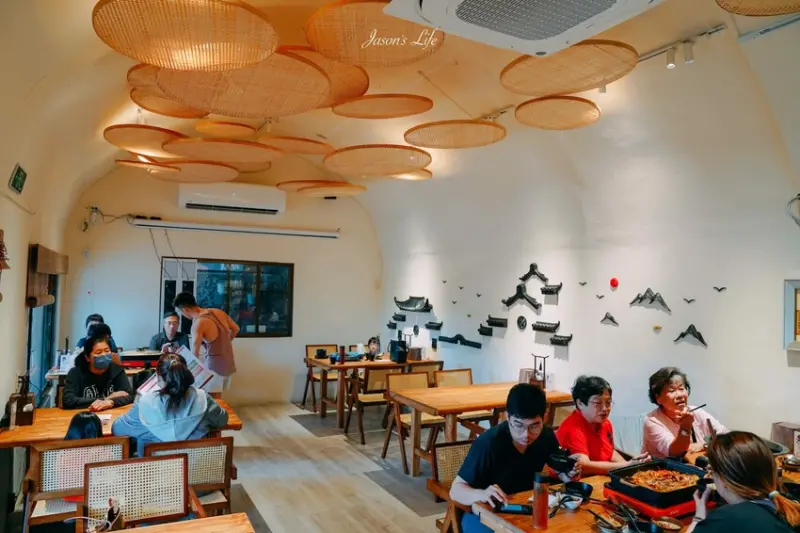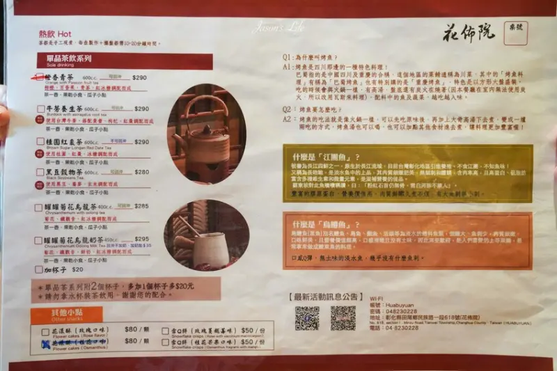 「花佈院」主要的餐點就是烤魚跟火鍋。不過要注意喔,室內空間目前只能點茶品和火鍋、烤魚,想吃豆花的話就只能在戶外用餐區享用。