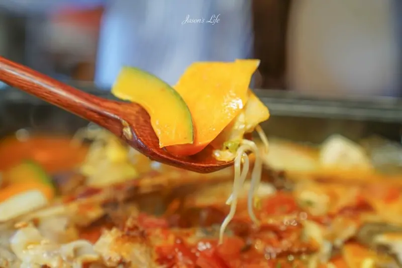 番茄口味是裡面唯一比較不辣的,湯底是用單純的番茄去熬製的。配菜也很豐富,有豆皮、豆芽、青菜、豆腐等等。