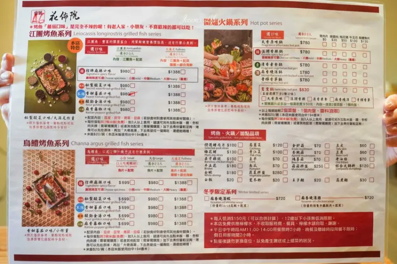 接下來要介紹他們家的招牌餐點啦!像是火鍋、酸菜魚,還有豆花,聽說都很厲害。酸菜魚還有分2到3人份,魚的種類可以選江團烤魚或是烏鱧烤魚。