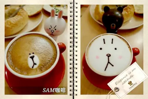 整個吸引YOYO目光的就是Sam的LINE熊大兔兔拉花及大眼怪拉花,
