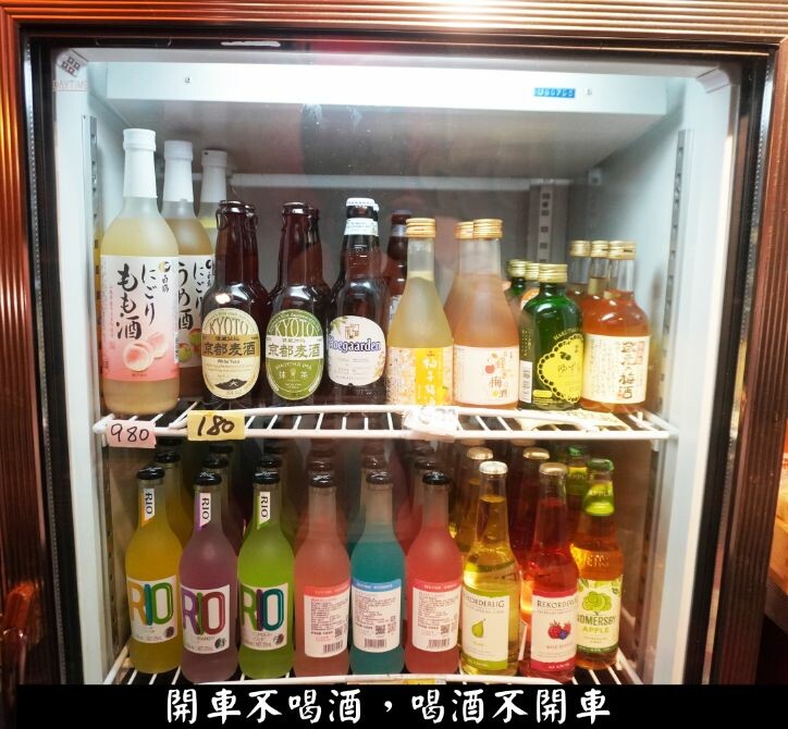 在結帳櫃檯旁還有兩個冰箱,擺滿各種酒款,無糖茶及店家自製的飲料。