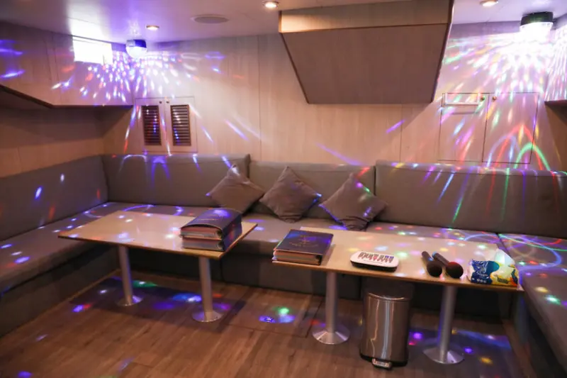 頂級雙層純白遊艇,有室內船艙的歡唱包廂,