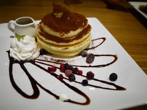 主角三塊煎餅,跟上面的卡士達醬、香草冰淇淋