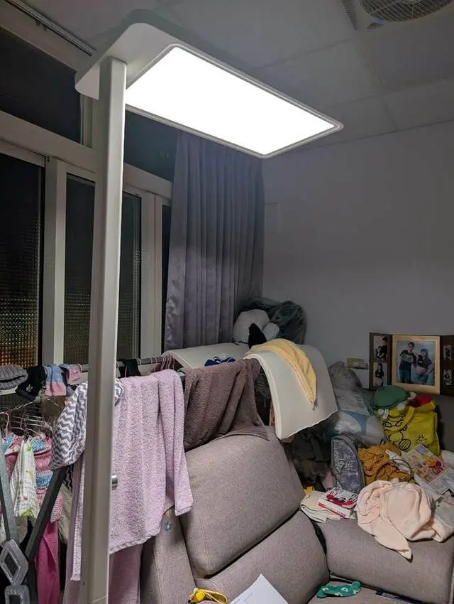 我現在把這盞燈擺在客廳沙發旁,平常用來看書或滑手機很方便。高度夠、照明範圍大,又不需要擠出空間放檯燈,對我這種空間不大的家庭來說真的滿加分。