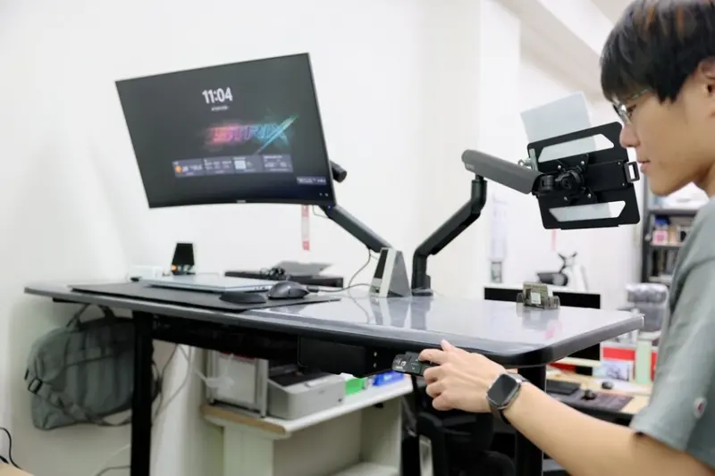 辦公效率的秘密武器 不只有椅子 這裡的升降桌更是超級推薦 搭載控制系統 輸入身高就會自動調整桌高 科技感滿滿
