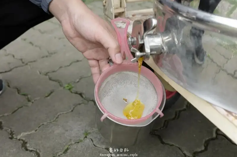 看著金黃蜜液沿著桶壁慢慢流下的畫面,不只大人感動,連小朋友也忍不住驚呼連連。