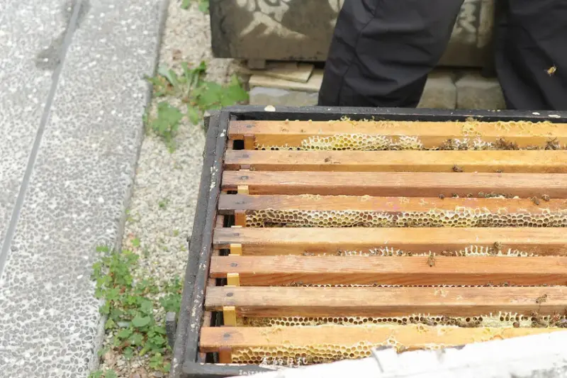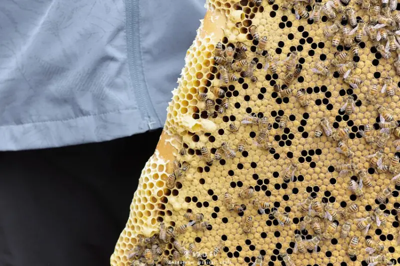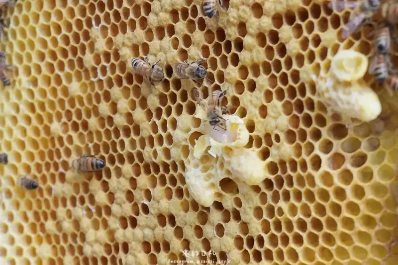 照片中也可以看到,這邊的蜂窩顏色不同,顏色深的代表時間比較久一些,顏色淺的則為年輕一些。