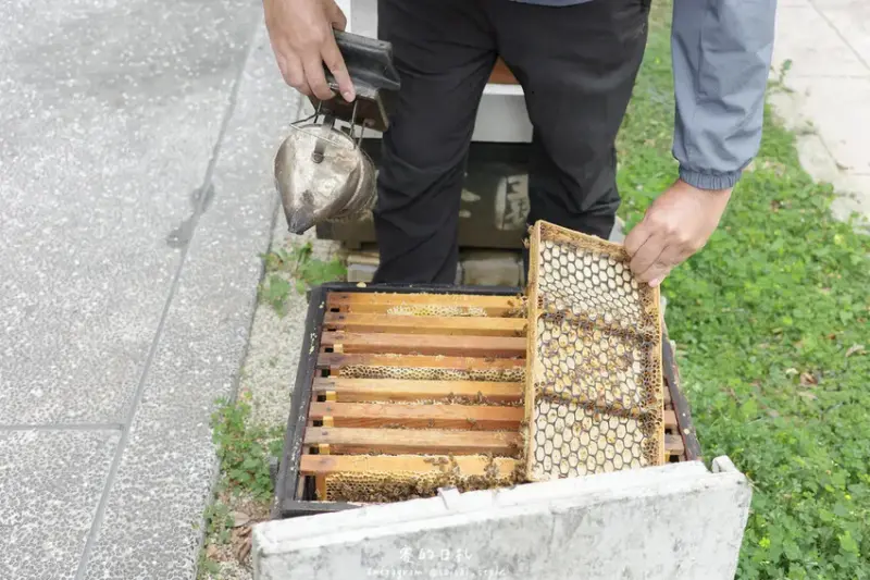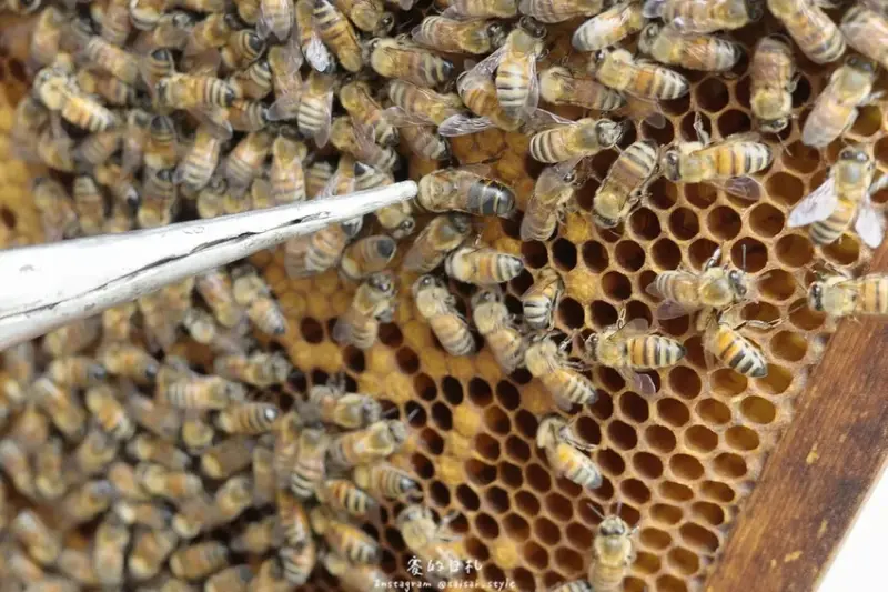 透過老闆的導覽,才知道原來蜜蜂採蜜的範圍可遠達1至3公里,而真正負責採蜜的是工蜂,若希望產出特定品種的蜂蜜,如龍眼蜜或荔枝蜜,還必須在花季期間將整箱蜜蜂搬運到特定地點,有時甚至遠赴台南的花農果園,才能讓蜜蜂順利採集單一花種的花蜜。