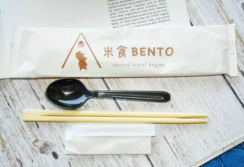 每份便當都有附上餐具,筷子、湯匙、衛生紙、牙籤
