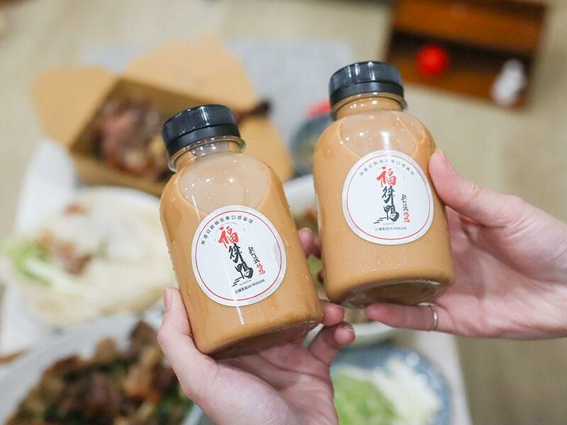 港式創意冰梅醬。 這個桂花冰梅醬可是福徠鴨的招牌沾醬。老闆娘是香港人,她用港式風味做出跟別人完全不一樣的冰梅醬。吃起來微酸帶甜,香氣很清爽。吃過的人一定會愛上它。