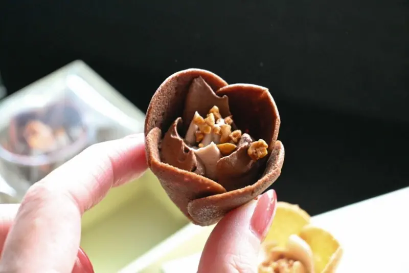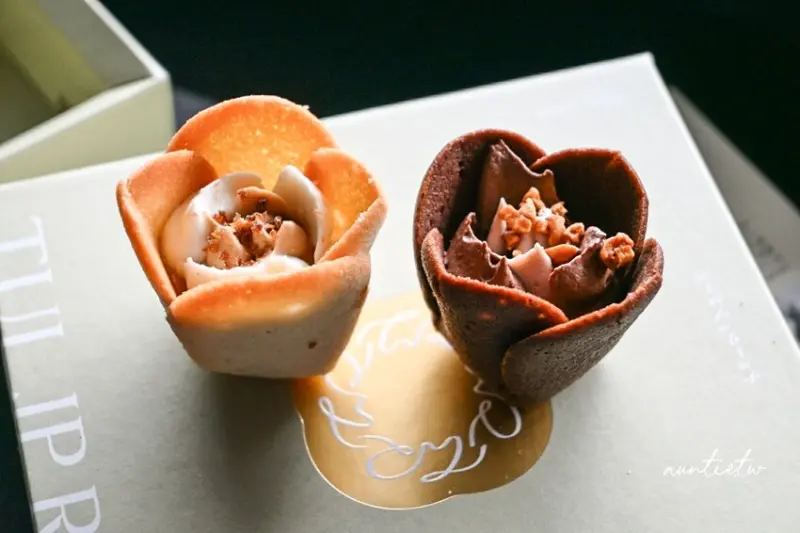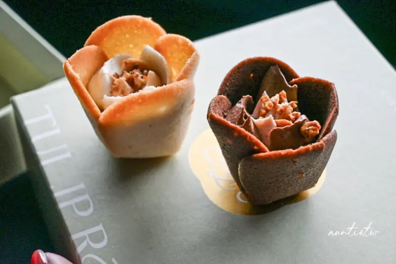 TULIP ROSE 的外層薄餅口感非常輕薄,內層的奶油味也是不甜不膩,撒上一些堅果粒,更多了脆脆的口感。巧克力味很香濃,不論是包裝或是餅乾本身都是會讓人收到吃起來心情非常好的,不論是自己吃或是當成伴手禮都非常適合,近期覺得最美的伴手禮就是這家,推薦!