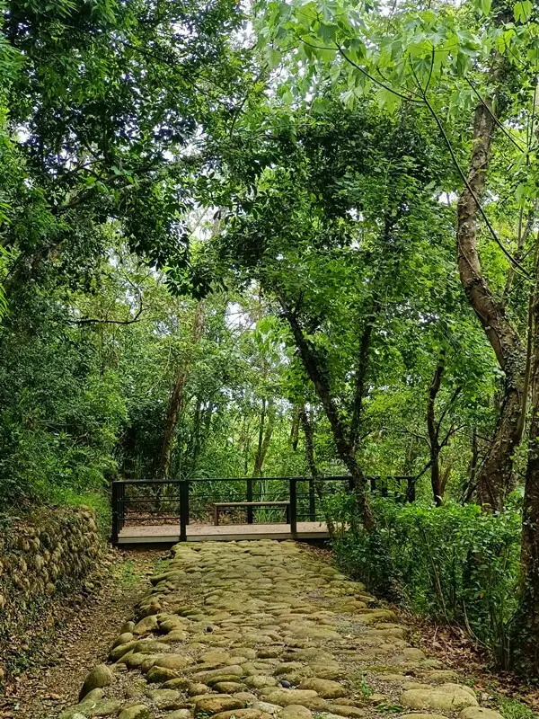 走完木棧道之後就是石頭步道,中間還有這個小平台可讓人稍作休息,喘一下再繼續走