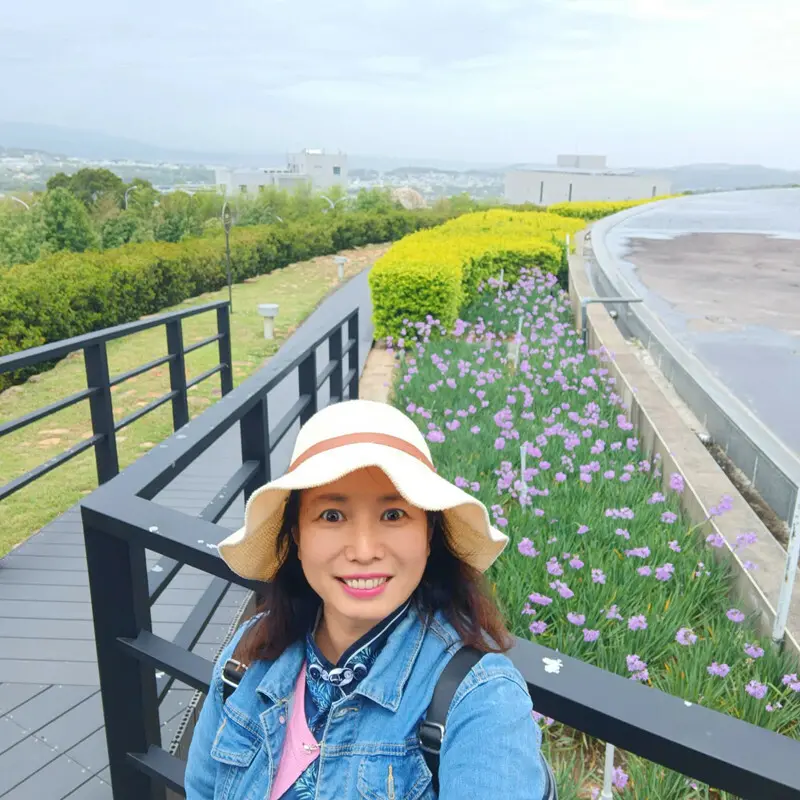 我們第一個抵達入口處旁邊的生態池,池裡有漂亮的紫色睡蓮和鳶尾花,靜靜地開在池塘一隅,乍看彷彿是莫內筆下的畫作