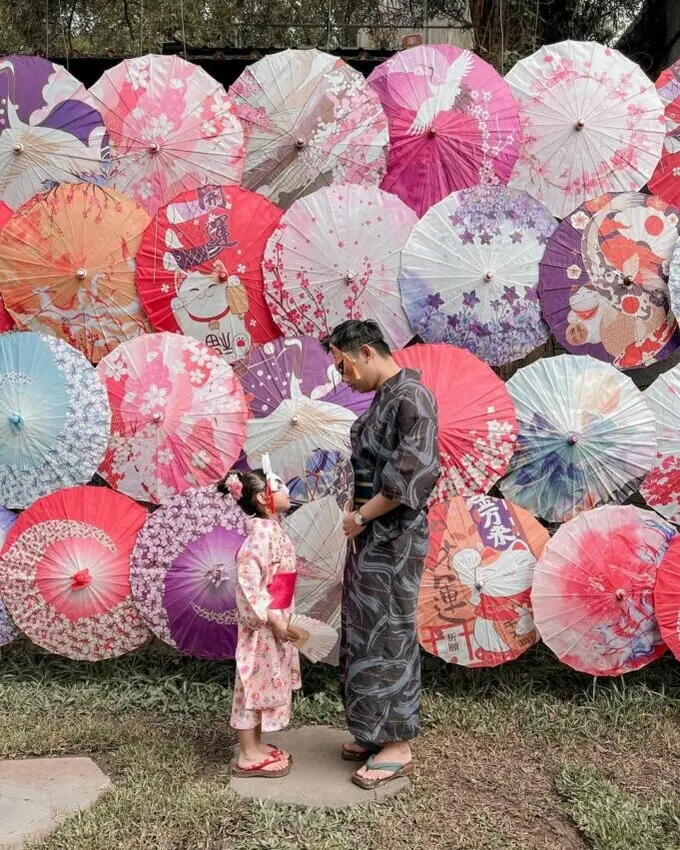 「鳥居喫茶食堂」浴衣的款式眾多,還有髮飾和配件隨客人挑選,穿著繽紛的浴衣,走在日式神社庭園裡,整個感覺就像真的出國到了日本。
