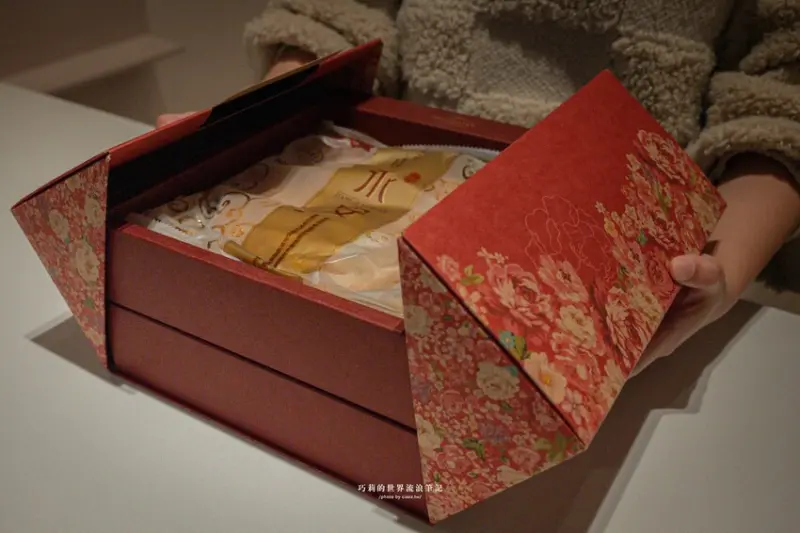除了喜餅之外也有搭配玫瑰茶包的禮盒,居然還有這種搭配紅酒禮盒的盒型也太酷了!
