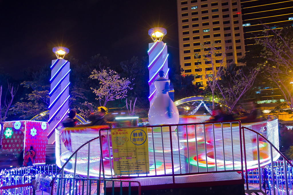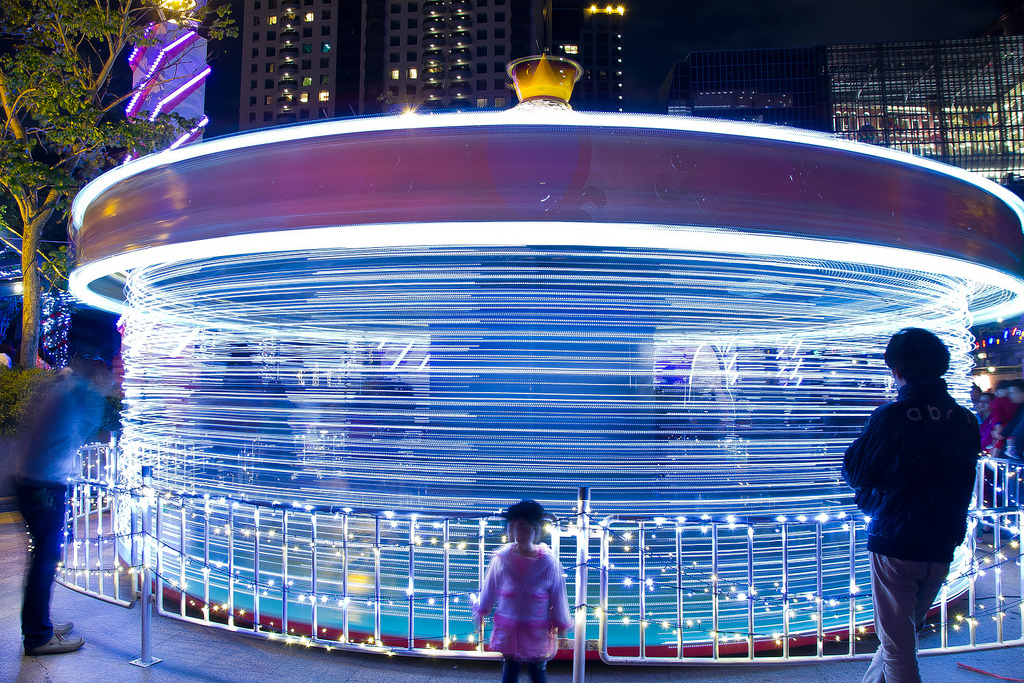 旋轉木馬轉動的軌跡因相機長曝而顯得像高速般