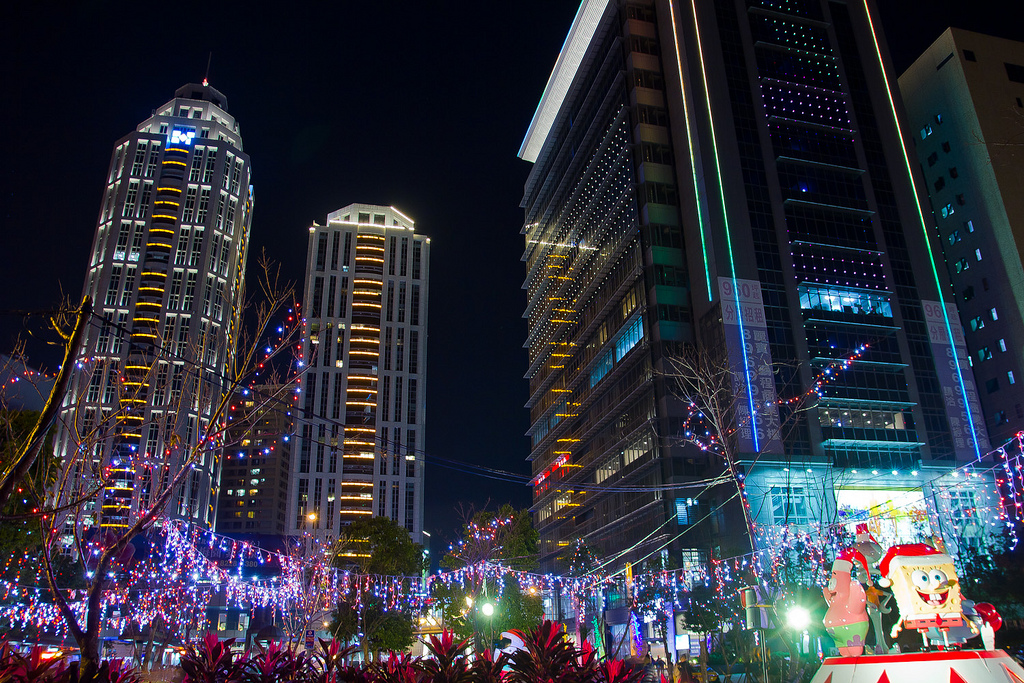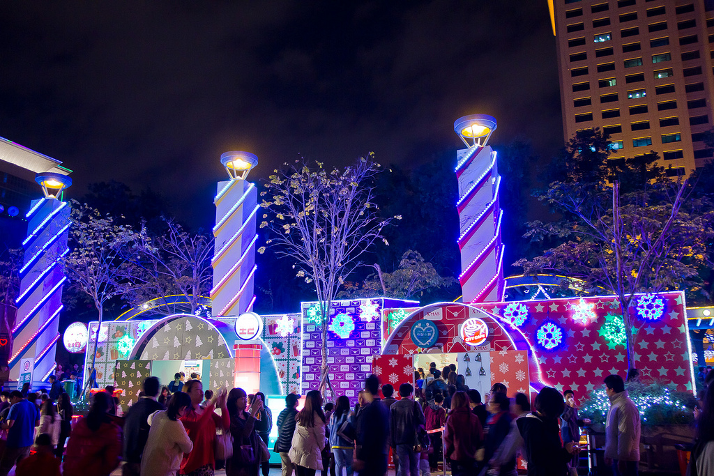 當晚的新板特區像個不夜城,耶誕燈海蔓延了整個新板特區