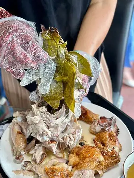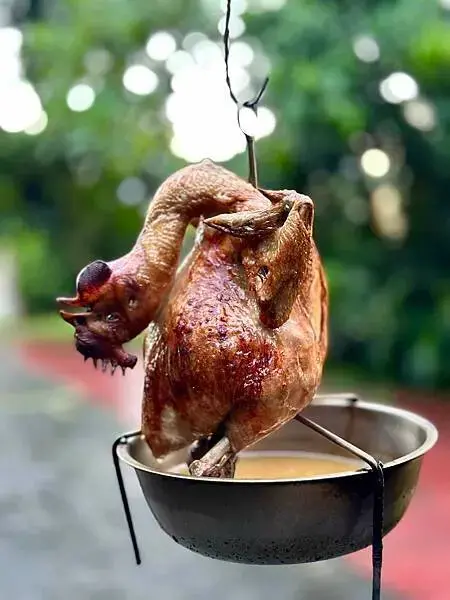 他們的【風味肉桂桶子雞】是當天現烤的限量菜色!一定要提前一天或至少兩小時預約才吃得到喔!他們會選用兩點五到三斤的黑羽母雞,肚子裡面塞滿新鮮的台灣土肉桂葉,再用柴火慢慢烤,烤到雞皮酥酥的,雞肉又嫩又多汁,那個味道真的超迷人,很多老饕都很愛。